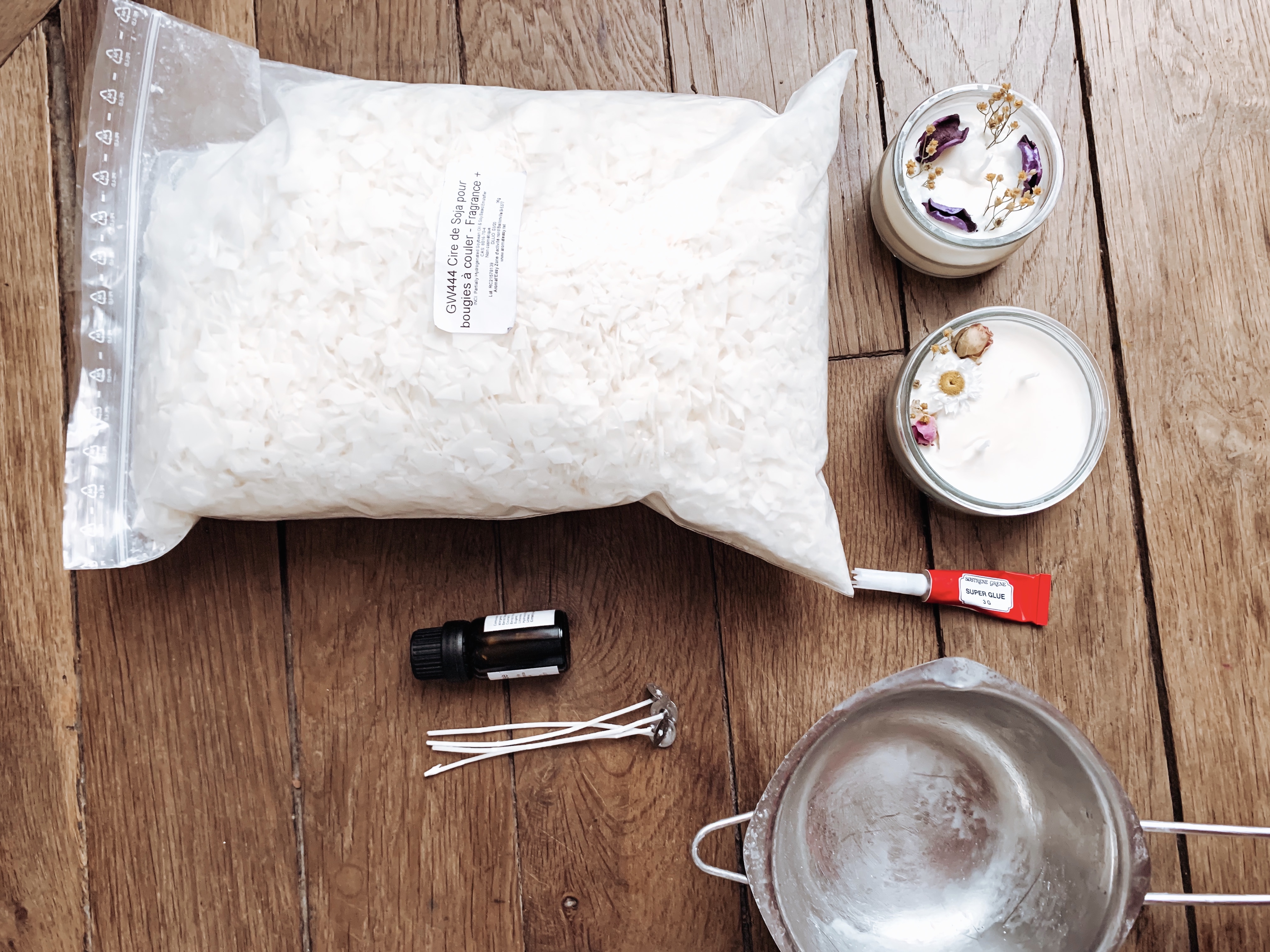 Mes bougies sont à base de cire de soja et d’huiles essentielles ce qui peut également servir pour de l’aromathérapie. J’espère que mon article vous donnera envie de faire vos propres bougies que ce soit en cadeau ou pour vous même. Je trouve que la création détend alors c’est parti pour les différentes étapes.